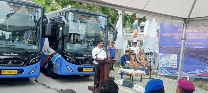 TERASBATAM.ID: Walikota Batam Muhammad Rudi secara official meluncurkan pengoperasian 20 unit bus Trans Batam untuk peningkatan layanan transportasi umum bagi warga Batam. Pengguna angkutan umum ini tidak lagi membayar tunai, namun dengan cashless melalui QRIS.