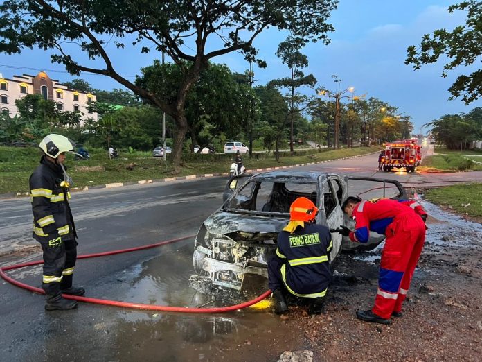 TERASBATAM.ID – Sebuah mobil Toyota Agya berwarna merah bata dengan nomor polisi BP 13xx XX terbakar hebat di Jalan Yos Sudarso, depan Kompleks Sakura Permai atau dekat Markas Kodim 0316 Batam, Jumat (10/10/2025) sekitar pukul 05.16 WIB. Pengemudi yang panik sempat berusaha mencari alat pemadam api (APAR) namun terlambat, menyebabkan mobil ludes dan hanya menyisakan kerangka.