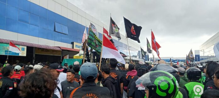 TERASBATAM.id: Ribuan pengemudi (driver) online di Kota Batam menggelar aksi unjuk rasa pada Kamis (3/10/2024). Mereka mendatangi kantor perwakilan aplikator seperti Maxim, Grab, dan Gojek untuk memprotes ketidakpatuhan perusahaan tersebut dalam menjalankan Surat Keputusan (SK) Gubernur Kepulauan Riau tentang penyesuaian tarif layanan.