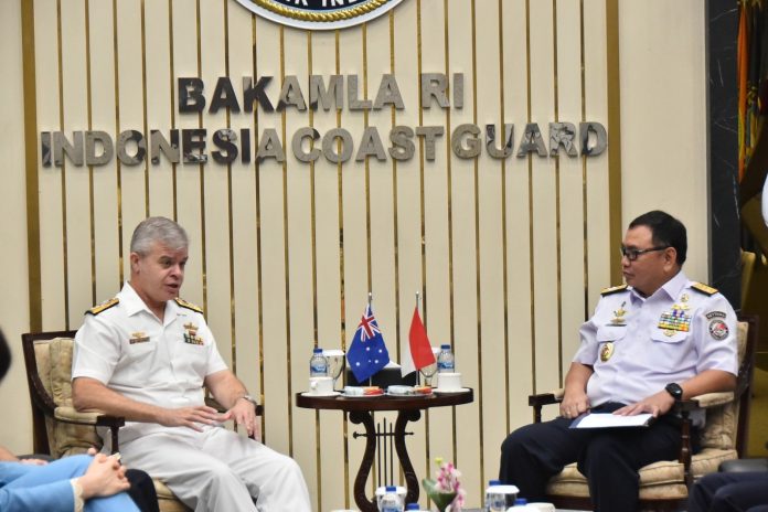 TERASBATAM.ID – Badan Keamanan Laut (Bakamla) Republik Indonesia kembali memperkuat hubungan dengan Australia dalam bidang keamanan maritim. Sekretaris Utama Bakamla RI, Laksda TNI Dr. Samuel Kowaas, menerima kunjungan Komandan Maritime Border Command (MBC) Australia, Rear Admiral Brett Sonter, beserta delegasi Australian Border Force (ABF) di Mabes Bakamla RI, Jakarta Pusat, Jumat (22/08/2025).