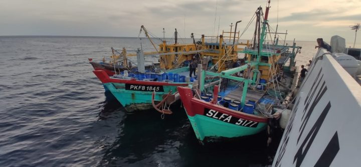 “Tidak hanya satu kapal, KN. Bintang Laut – 401 berhasil menangkap tiga KIA asal Malaysia, dengan barang bukti sebanyak kurang lebih 3 ton ikan campuran,” kata Suwito.