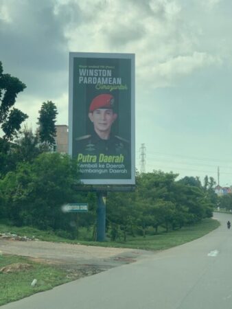 Baliho dengan tulisan “Putera Daerah, Kembali ke Daerah, Membangun Daerah” seperti menegasi bahwa baliho tersebut dipasang dalam rangka menyambut Pemilihan Kepada Daerah (Pilkada) Kepri mendatang, Sebab Winston walaupun berdarah batak, namun lahir dan besar di Kota Tanjungpinang, Provinsi Kepulauan Riau.