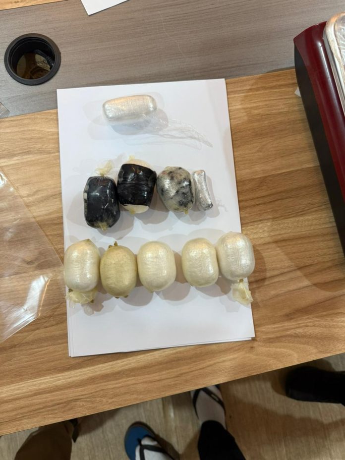 Hasil rontgen menunjukkan MM menyembunyikan 10 bungkusan narkotika di dalam dubur (inserting). Bungkusan tersebut terdiri dari 5 bungkus methamphetamine (sabu), 4 bungkus ekstasi, dan 1 bungkus cairan vape yang diduga mengandung etomidate.