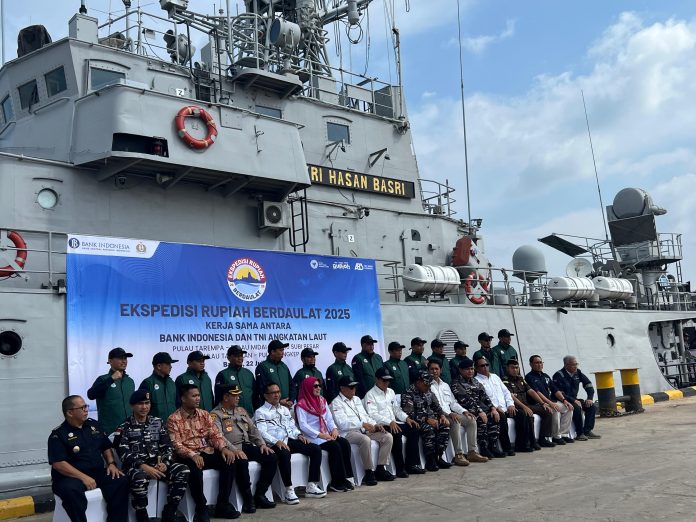 TERASBATAM.ID – Bank Indonesia (BI) bekerja sama dengan TNI Angkatan Laut (AL) meluncurkan Ekspedisi Rupiah Berdaulat 2025 untuk mendistribusikan uang tunai dan mengedukasi masyarakat di pulau-pulau terdepan, terluar, dan terpencil (3T) di Kepulauan Riau (Kepri). Pelepasan KRI Hasan Basri – 382 yang mengangkut uang rupiah dan tim ekpedisi dilakukan di Pelabuhan Bintang 99, Batu Ampar, Batam, Kepulauan Riau, Selasa (22/07/2025).