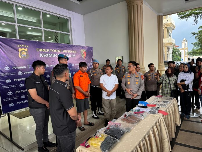 Kapolda Jambi, Krisno Halomohan Siregar, saat konferensi pers di Mapolda Jambi pada Selasa (07/10/2025), mengonfirmasi penangkapan Dede di sebuah rumah kos di Jalan Griya Sumsel Sejahtera, Banyuasin, Sumatra Selatan.