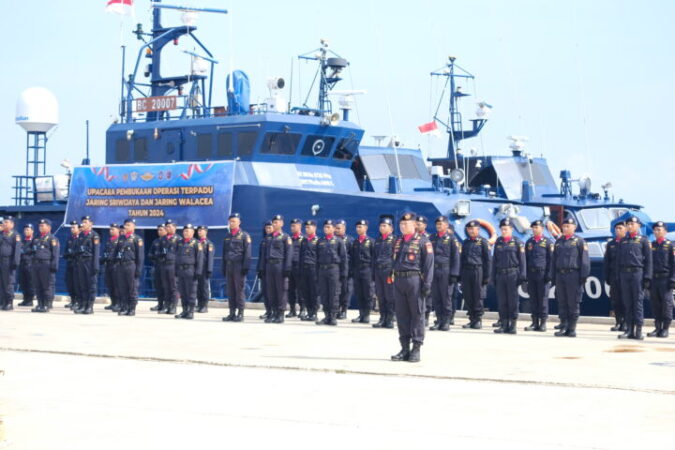 TERASBATAM.ID: Direktur Jenderal Bea dan Cukai Republik Indonesia Askolani secara remi membuka Operasi Patroli Laut Terpadu Bea dan Cukai Jaring Sriwijaya dan Jaring Wallacea secara serentak untuk menjaga wilayah negara Indonesia di Dermaga Bea Cukai, Tanjung Uncang di Batam, Kepulauan Riau, Kamis (07/03/2024).