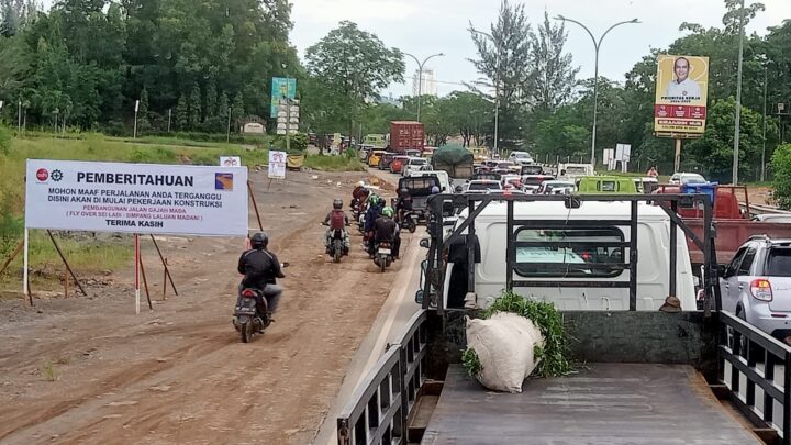 Pemasangan board sign hingga penebangan pohon di sepanjang jalan yang akan dilalui Flyover telah dimulai sejak Selasa (09/01/2024) yang mengakibatkan kemacetan yang dimulai dari Pura Amerta Agung Buana hingga Simpang UIB mulai terjadi sejak pagi dan pada waktu sore.