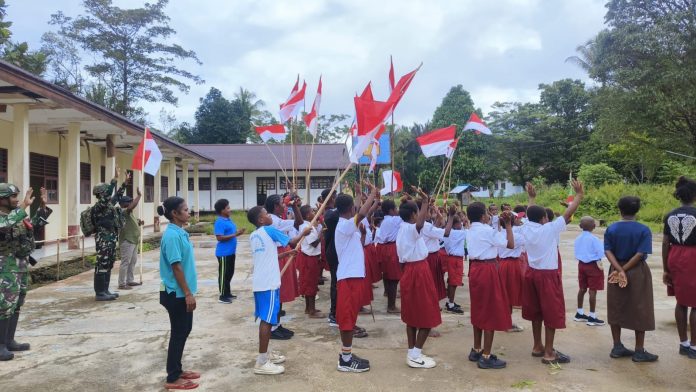 TERASBATAM.ID – Satuan Tugas Pengamanan Perbatasan (Satgas Pamtas) RI–Papua Nugini (PNG) Mobile Yonif 10 Marinir/SBY menggelar kirab bendera Merah Putih di Distrik Aifat Timur Tengah, Kabupaten Maybrat, Papua Barat Daya, Jumat (08/08/2025). Kegiatan ini merupakan bagian dari rangkaian perayaan Hari Ulang Tahun (HUT) ke-80 Kemerdekaan Republik Indonesia.
