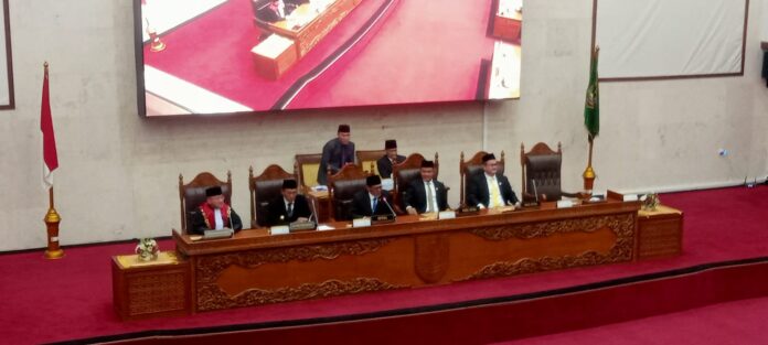 TERASBATAM.ID: Ketua Pengadilan Negeri Batam Bambang Trikoro bertindak memandu pengucapan sumpah dan janji unsur pimpinan Dewan Perwakilan Rakyat Daerah (DPRD) Kota Batam periode 2024-2029 di Gedung DPRD Batam, Rabu (25/09/2024).