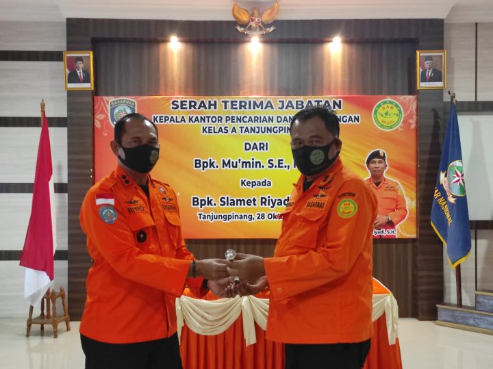TerasBatam.id: Jabatan Kepala Kantor Pencarian dan Pertolongan Tanjungpinang diserahterimakan dari pejabat lama Mu’min kepada Slamet Riyadi, Kamis (28/10/2021). Prosesi serahterima tongkat komando dari pejabat lama kepada pejabat baru dilakukan secara daring.