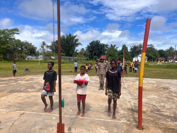 TERASBATAM.ID – Menjelang peringatan Hari Ulang Tahun (HUT) ke-80 Kemerdekaan Republik Indonesia, Satgas Pengamanan Perbatasan (Pamtas) RI-PNG Mobile Yonif 10 Marinir/SBY Gobang IV mengadakan pelatihan upacara bendera secara serentak bagi siswa-siswa Sekolah Dasar di wilayah Maybrat, Papua Barat Daya, Sabtu (16/08/2025).