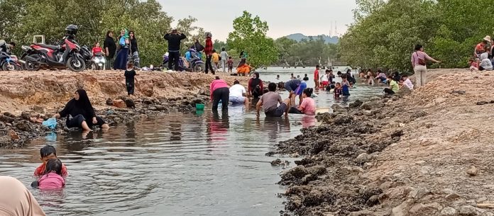 “Saya dekat dari rumah malah tidak tahu tempat ini jadi buruan warga untuk mencari kerang. Tiba-tiba jadi wisata dadakan,” ujar Yuniarti.