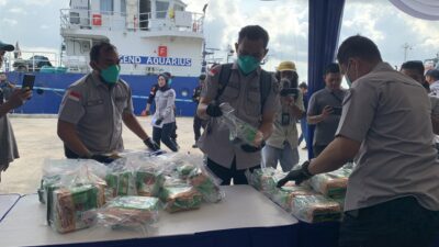 TERASBATAM.ID: Kapal Cargo Berbendera Singapura Legend Aquarius yang memiliki panjang 45 Meter ditangkap oleh tim gabungan dari Badan Narkotika Nasional (BNN), Bea Cukai dan Kepolisian di Perairan Pongkar, Kabupaten Karimun, Sabtu (13/07/2024) karena mengangkut 106 Kilogram Sabu-sabu yang disembunyikan di ruang bahan bakar mesin untuk dibawa menuju Brisbane, Australia.