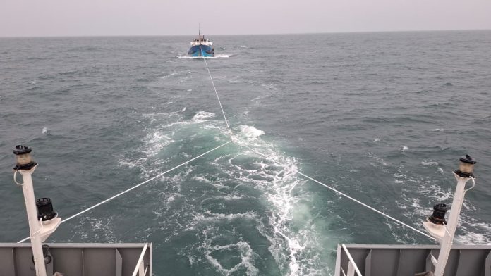 Setelah situasi mulai terkendali, KN. Pulau Dana-323 menarik (towing) KM Semangat Nelayan menuju Pulau Jemur, yang berjarak sekitar 43 nautical mile di timur Tanjung Balai Asahan, untuk berlindung sementara.