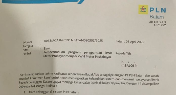 TERASBATAM.id- Langkah PT PLN Batam untuk mengganti kWh Meter Prabayar pelanggan menjadi kWh Meter Paskabayar menuai pertanyaan dan berpotensi menimbulkan kekhawatiran di kalangan pengguna listrik. Alih-alih peningkatan fitur, kebijakan ini justru dinilai sebagai langkah mundur dan berpotensi menambah beban administrasi bagi pelanggan.