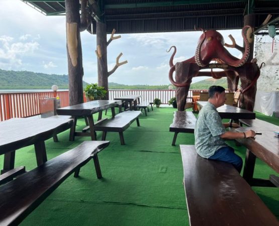“Begini, ya,” jawab Akuang, pandangannya menerawang, seolah mengulang adegan demi adegan proses kreatifnya. “Konsepnya ini murni untuk memikat wisatawan. Kami rancang dengan sentuhan yang berbeda, ornamen bahari yang kuat, dan ruang terbuka yang luas. Jadi, tamu yang datang bukan hanya untuk menikmati hidangan laut segar, tapi juga bisa berfoto, bersantai, dan merasakan kenyamanan suasana yang lapang.”