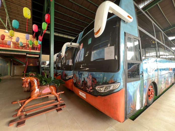 Namun, ada satu ciri khas Kepri Seafood yang takkan dijumpai di tempat lain: empat unit bus yang disulap menjadi ruang makan unik. “Ini ide spontan untuk memberikan pengalaman yang berbeda bagi pengunjung,” kata Akuang sambil tersenyum.