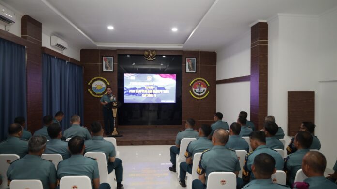 TERASBATAM.id: Wakil Komandan Lantamal IV, Kolonel Laut (P) Ketut Budiantara, memberikan pengarahan kepada para Komandan Posal dan Bintara Pembina Potensi Maritim (Babinpotmar) di Mako Lantamal IV, Batam, Senin (07/10/2024).