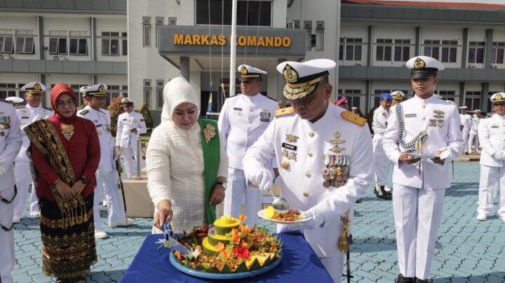 TERASBATAM.ID: Pangkalan Utama TNI Angkatan Laut (Lantamal IV) Batam menggelar upacara peringatan Hari Ulang Tahun (HUT) ke-79 TNI Angkatan Laut di lapangan Apel Mako Lantamal IV, Kota Batam, Kepri, pada Selasa (10/9/2024).
