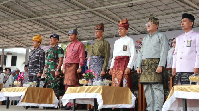 TERASBATAM.ID: Komandan Lantamal IV Batam, Laksamana Pertama TNI Tjatur Soniarto, turut memeriahkan peringatan Hari Jadi Provinsi Kepulauan Riau (Kepri) ke-22 di Dataran Engku Putri, Batam, Selasa (24/09/2024).