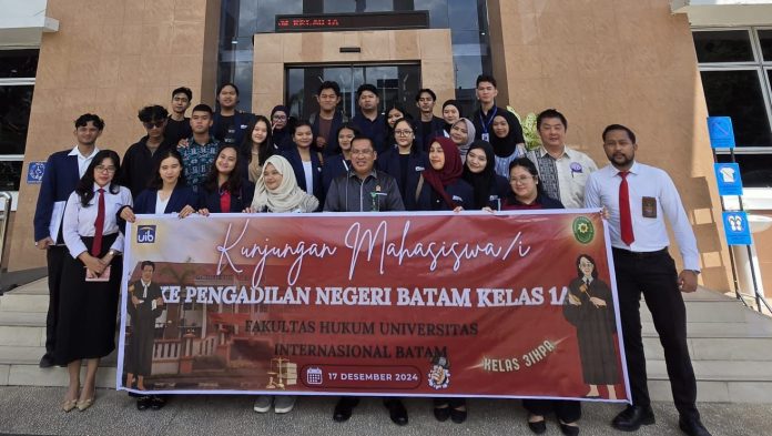 TERASBATAM.id: Sebanyak 25 mahasiswa Fakultas Hukum Universitas Internasional Batam (UIB) semester III melakukan studi lapangan ke Pengadilan Negeri Batam pada hari Selasa (17/12/2024). Kegiatan ini bertujuan untuk memberikan pemahaman langsung kepada mahasiswa mengenai praktik peradilan di Indonesia.