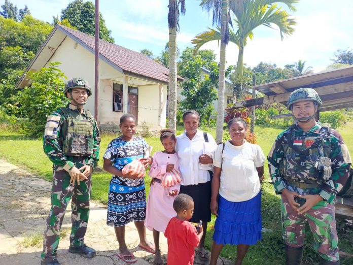 “Kami ingin berbagi sukacita dan berkat bersama saudara-saudara kami di Kampung Kamat. Melalui kegiatan ini, semoga hubungan baik antara Satgas dan masyarakat semakin erat,” ujar Danpos Kamat.