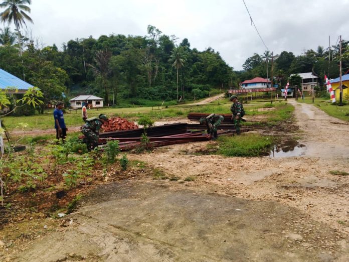 TERASBATAM.ID – Prajurit TNI Angkatan Laut dari Satgas Pengamanan Perbatasan (Pamtas) RI-PNG Mobile Yonif 10 Marinir/SBY Gobang IV bersama warga Kampung Ayata, Papua Barat Daya, bergotong royong membangun mes tamu di area Gereja Santo Andreas. Kegiatan ini memperkuat hubungan antara aparat keamanan dan masyarakat di wilayah perbatasan.