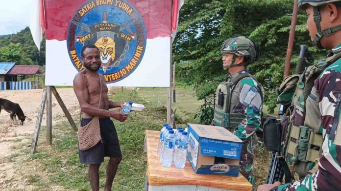 TERASBATAM.ID – Satuan Tugas Pengamanan Perbatasan (Satgas Pamtas) RI-Papua Nugini (PNG) Mobile Yonif 10 Marinir/SBY kembali menunjukkan kedekatannya dengan masyarakat. Prajurit Marinir menggelar kegiatan makan bersama warga Kampung Ayata, Distrik Aifat Timur, Kabupaten Maybrat, Papua Barat Daya, Minggu (02/11/2025).