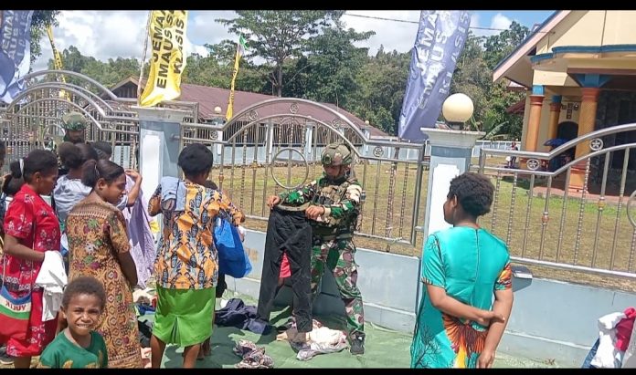 TERASBATAM.ID – Satuan Tugas Pengamanan Perbatasan (Satgas Pamtas) RI-PNG Mobile Yonif 10 Marinir/SBY kembali menunjukkan aksi kepedulian sosial dengan membagikan baju layak pakai kepada warga Kampung Susumuk, Distrik Aifat, Kabupaten Maybrat, Papua Barat Daya, Senin (29/09/2025). Kegiatan ini merupakan bagian dari upaya TNI Angkatan Laut untuk mempererat kemanunggalan TNI dengan rakyat di wilayah pedalaman.