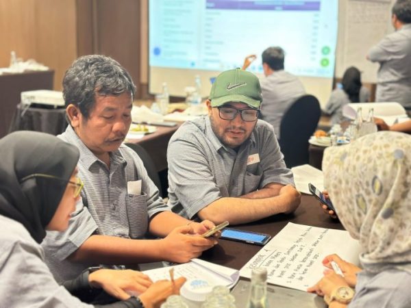 Sesi ini juga mencakup praktik menulis narasi data dan diskusi kelompok untuk mengoptimalkan kemampuan jurnalis dalam menarasikan data.