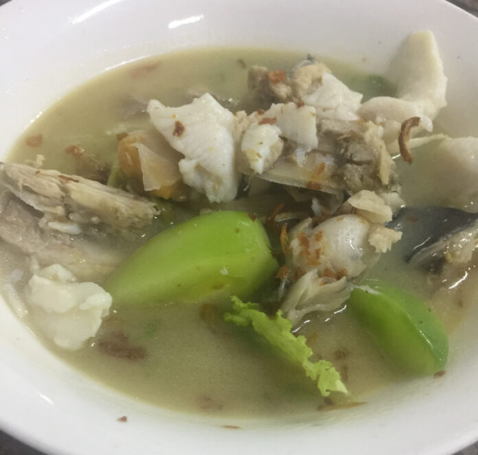 Selain sup ikan, biasanya juga dipadukan dengan udang dan sotong, khusus untuk kepala sop ikan tenggiri akan ditemani buah asam di dalam kuahnya, rasanya yang kecut asem itu menyebabkan tidak ada aroma amis dari olahan ikan yang disajikannnya.