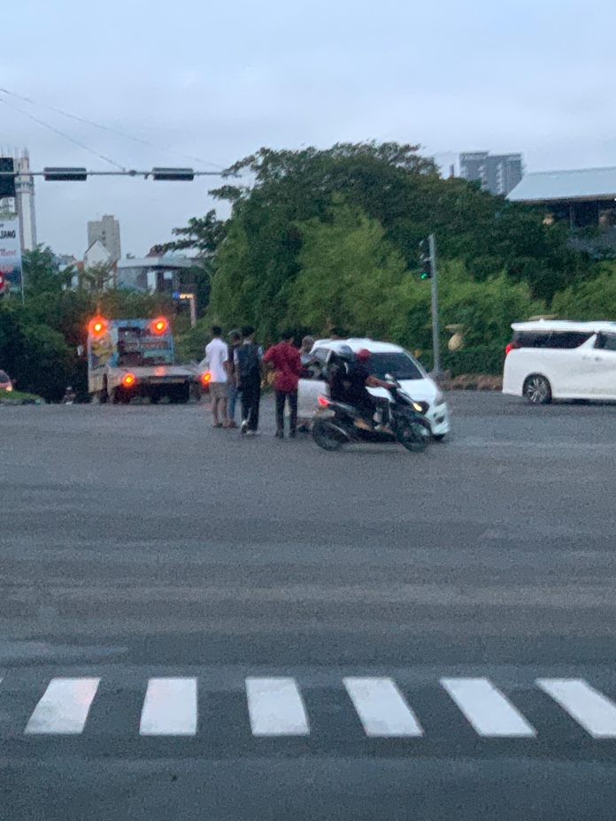 Kejadian ini menarik sejumlah pengguna jalan yang mulai ramai pagi itu yang tidak jauh dari Pos Polisi Turjawali Pengaturan, Penjagaan, Pengawalan, dan Patroli Satlantas Barelang yang berada di depannya.
