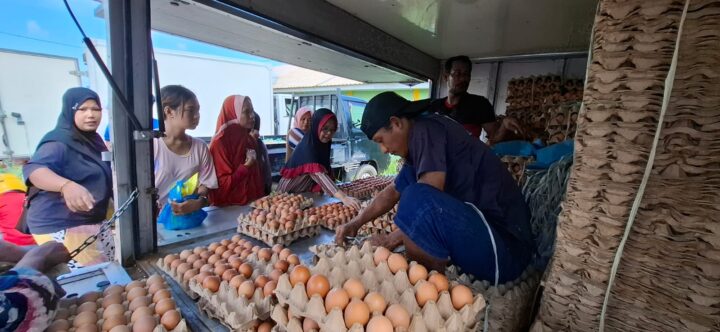 “Misalnya, telur ayam satu papan di pasar dijual Rp 56 ribu. Di sini, kami jual Rp 53 ribu,” jelas Aryanto.