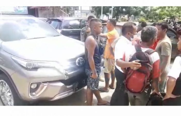 “Apa salah kami, kami mau ambil lagi mobil kami yang ditahan,” teriak salah satu pelaku penghadangan mobil milik Kadisperindag Batam.