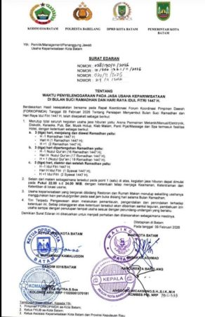 TERASBATAM.ID — Pemerintah Kota Batam resmi menetapkan pengaturan operasional Tempat Hiburan Malam (THM) selama bulan suci Ramadan 1447 Hijriah dengan memberlakukan skema 3-3-3. Kebijakan ini mewajibkan penutupan total operasional THM pada tiga fase krusial guna menjaga kekhusyukan ibadah dan ketertiban umum.