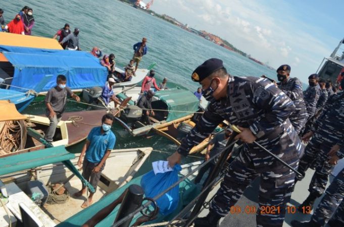 TerasBatam.id: Dalam rangka memperingati HUT TNI Angkatan Laut Ke-76, Guskamla Koarmada I dan Jalasenastri Cabang 5 DJA I menyelenggarakan Bhakti Sosial berupa pembagian sembako kepada masyarakat pesisir Pulau Ngenang dan sekitarnya, Batam, Kepulauan Riau pada Kamis (09/09/2021).