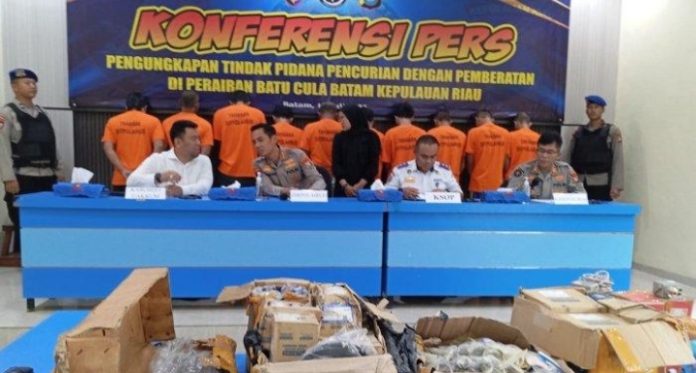 TERASBATAM.ID- Direktorat Polisi Perairan dan Udara (Ditpolairud) Polda Kepulauan Riau (Kepri) berhasil membekuk delapan anggota komplotan perompak kapal kargo asing yang beraksi di perairan perbatasan Selat Nipah dan Selat Philip sejak 2017. Polisi masih memburu tiga kelompok perompak lainnya yang diduga kerap beroperasi di wilayah tersebut.