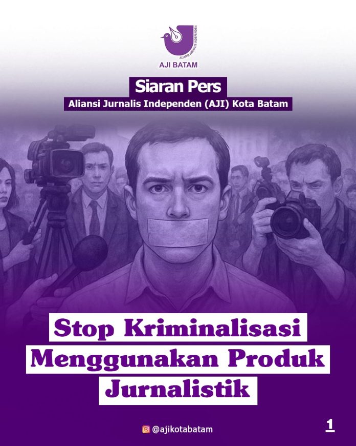 Aliansi Jurnalis Independen (AJI) Kota Batam mendesak Kepolisian Daerah Kepulauan Riau (Polda Kepri) menghentikan proses hukum yang menjadikan produk jurnalistik sebagai dasar pemidanaan terhadap seorang narasumber. AJI menegaskan, sengketa terkait karya pers harus diselesaikan melalui mekanisme di Dewan Pers, bukan melalui jalur pidana menggunakan Undang-Undang Informasi dan Transaksi Elektronik (UU ITE).