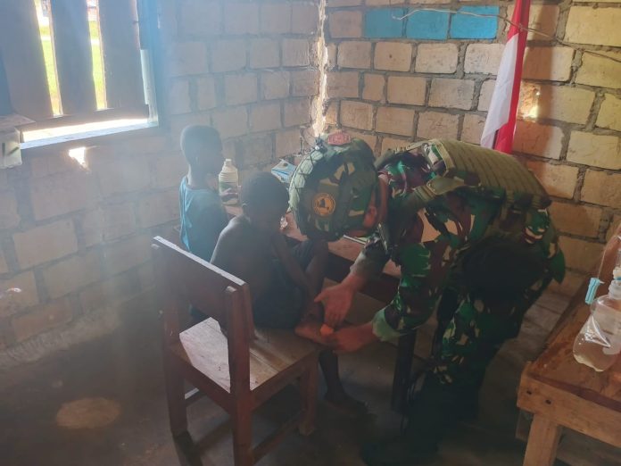 TERASBATAM.ID – Prajurit Satuan Tugas Pengamanan Perbatasan (Satgas Pamtas) RI-PNG Mobile Yonif 10 Marinir/SBY Pos Aimasa menggelar kegiatan Pembinaan Komunikasi Sosial (Binkomsos) dan pengobatan gratis di Kampung Aimasa, Kabupaten Maybrat, Minggu (24/08/2025).