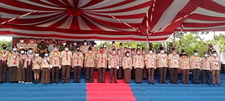 Upacara peringatan Hari Ulang Tahun (HUT) Pramuka yang ke 60 diperingati oleh Kwartir Cabang Batam di Lapangan Engku Putri dengan dipimpin oleh Majelis Pertimbangan Kwarcab Muhammad Rudi yang juga Walikota Batam, Rabu (18/08/2021).