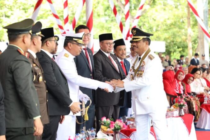 TERASBATAM.ID: Walikota Batam Muhammad Rudi bertindak sebagai inspektur upacara memperingati Hari Ulang Tahun (HUT) Republik Indonesia ke 79 di Dataran Engku Puteri, Batam Centre, Sabtu (17/08/2024). Ini akan menjadi momen terakhir Rudi bertindak sebagai pemimpin upacara HUT RI di Pemko Batam sebelum masa jabatannya berakhir beberapa bulan kedepan.