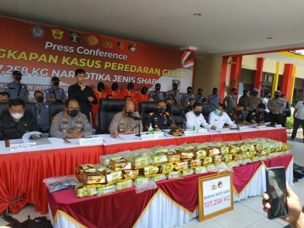 “Jika barang bukti tersebut beredar di pasaran bisa dikonsumsi sekitar 321.774 sampai dengan 429.000 jiwa. Dengan disitanya barang bukti tersebut kita bisa menyelamatkan ratusan ribu jiwa penduduk,” kata perwira tinggi berbintang satu yang pernah bertugas sebagai Wakapolres Barelang belasan tahun silam itu.