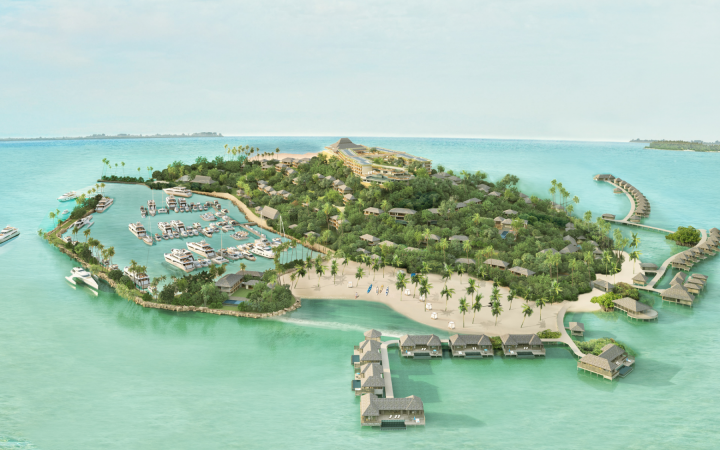 Dikelola oleh ONE°15 Marina, pengembangan terpadu akan menempati 47.100 meter persegi dan menawarkan tiga vila pribadi di atas air.