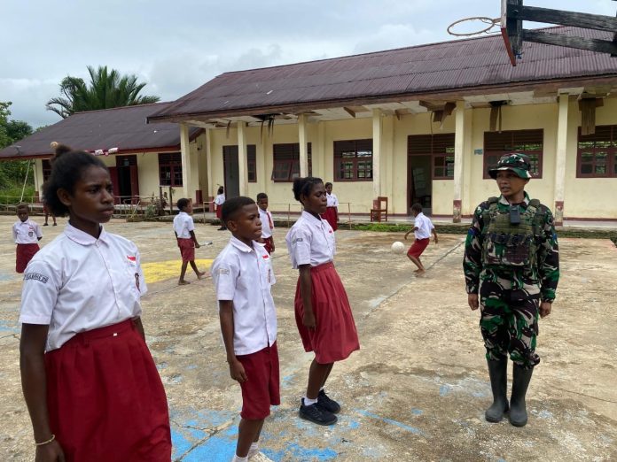 TERASBATAM.ID – Dalam rangka menyambut Hari Ulang Tahun ke-80 Kemerdekaan Republik Indonesia, Satuan Tugas Pengamanan Perbatasan (Satgas Pamtas) RI-PNG Mobile Gobang IV Yonif 10 Marinir/SBY menggelar pelatihan Peraturan Baris-Berbaris (PBB) bagi siswa-siswi di Kampung Aisa, Distrik Aifat Timur Tengah, Kabupaten Maybrat, Papua Barat Daya, Selasa (05/08/2025).