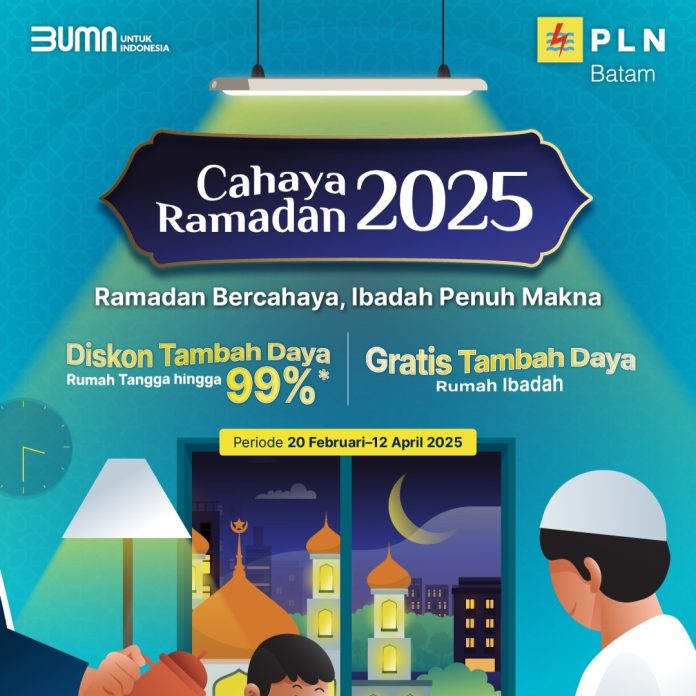 TERASBATAM.id – PT PLN Batam kembali menghadirkan promo tambah daya listrik bagi pelanggan melalui program “Cahaya Ramadan 2025”. Program ini menawarkan keringanan biaya tambah daya hingga 99% untuk pelanggan rumah tangga dan gratis untuk rumah ibadah.