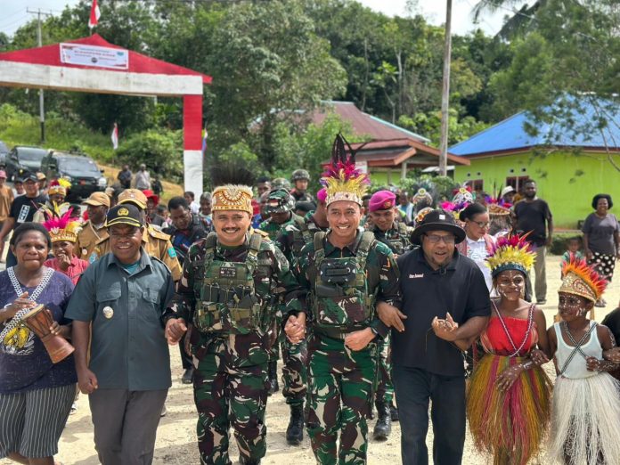 TERASBATAM.ID – Semangat kebersamaan dan nasionalisme terasa kental di Kampung Kisor, Distrik Aifat Selatan, Kabupaten Maybrat, Papua Barat Daya. Satuan Tugas Pengamanan Perbatasan (Satgas Pamtas) RI-PNG Mobile Gobang IV Yonif 10 Marinir/SBY Pos Imsun menggelar acara “Kuali Merah Putih” bersama warga setempat, Jumat (15/8/2025). Kegiatan unik ini menjadi puncak perayaan Hari Ulang Tahun (HUT) ke-80 Kemerdekaan Republik Indonesia.