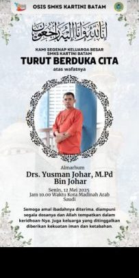 “Innalillahi wa innailaihi roji’un. Keluarga besar SMKS Kartini Batam turut berduka cita atas wafatnya Almarhum Drs. Yusman Johar, M.Pd Bin Johar. Semoga amal ibadahnya diterima, diampuni segala dosanya dan Allah tempatkan dalam kemuliaan-Nya,” tulis keterangan dalam unggahan tersebut.