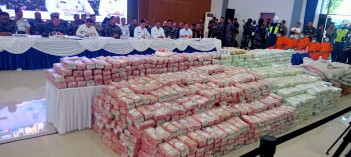 TERASBATAM.ID – TNI Angkatan Laut dan Badan Narkotika Nasional Republik Indonesia (BNN RI) memusnahkan lebih dari 2 ton narkotika, yang terdiri dari sabu dan kokain, di Markas Komando Lantamal IV Batam, Kepulauan Riau, pada Selasa (20/05/2025). Pemusnahan ini merupakan tindak lanjut dari operasi penangkapan penyelundupan narkotika terbesar dalam sejarah Indonesia.