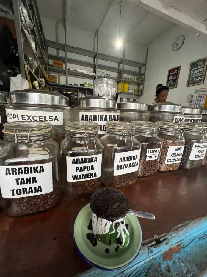 “Kami punya biji kopi Robusta, Arabica Gayo Aceh, Bali Kintamani, hingga Toraja dan Papua Wamena. Termasuk juga Kopi Dampit khas Malang,” ujarnya. Koleksi biji kopi ini merupakan hasil perjalanannya berburu kopi dari berbagai daerah, memastikan cita rasa terbaik untuk pelanggan.