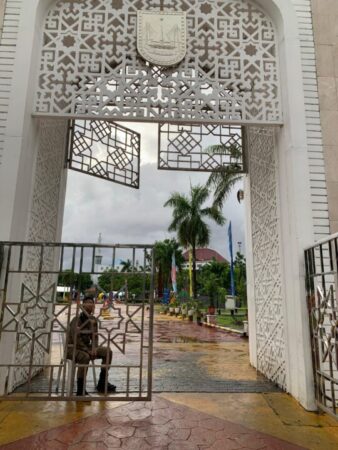 “Maaf kami ditugaskan untuk melarang warga masuk ke Lapangan Engku Putri pagi ini. Karena Panitia MTQ memintanya,” kata petugas Satpol PP.